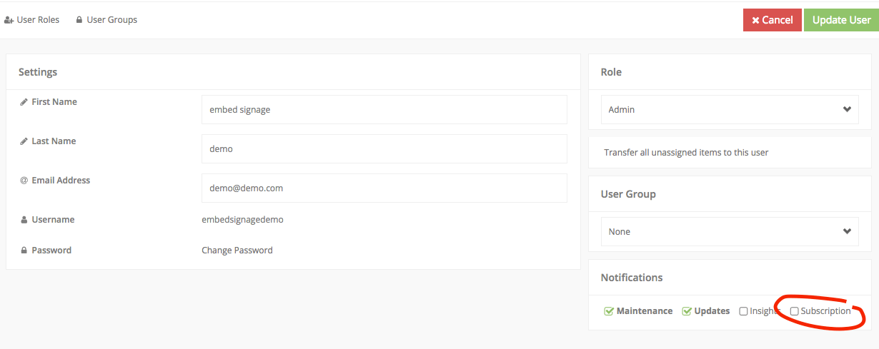 embed signage – digital signage software – software licenses email notification settings