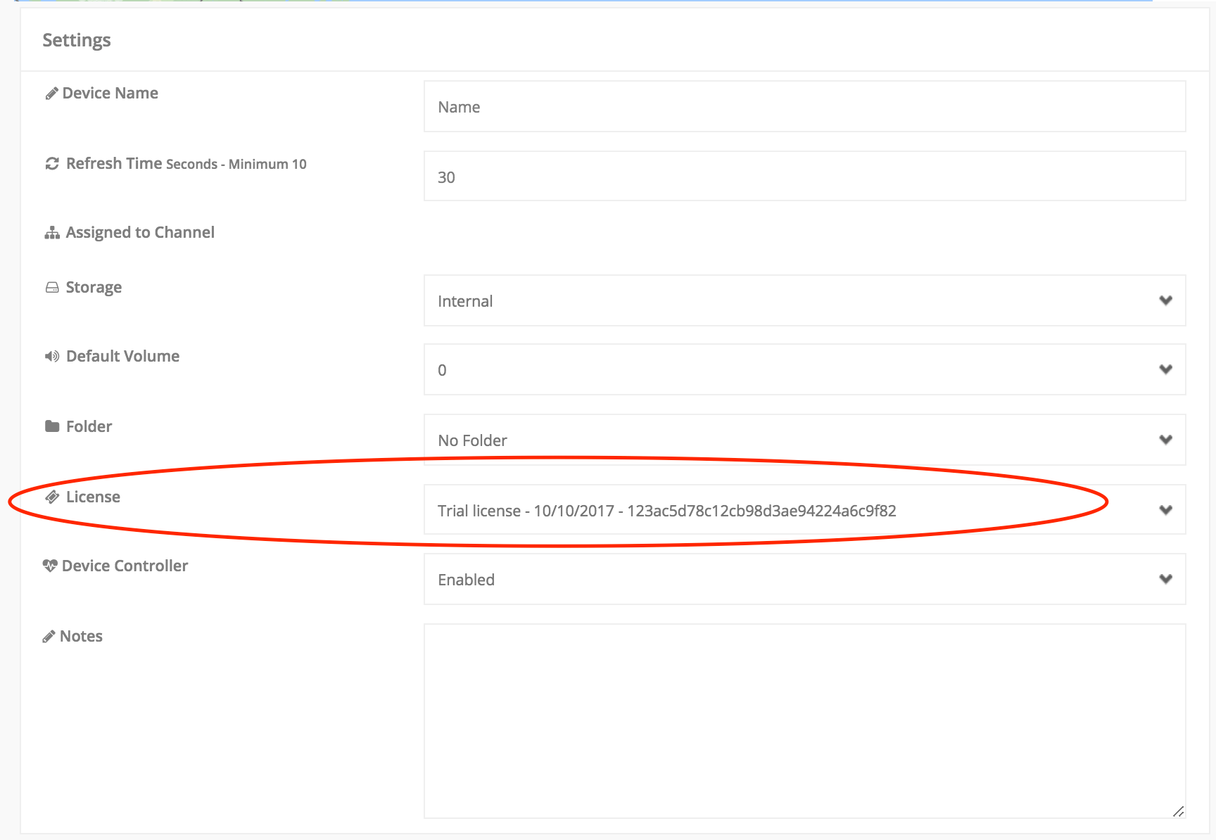 embed signage – digital signage software – license applied to device