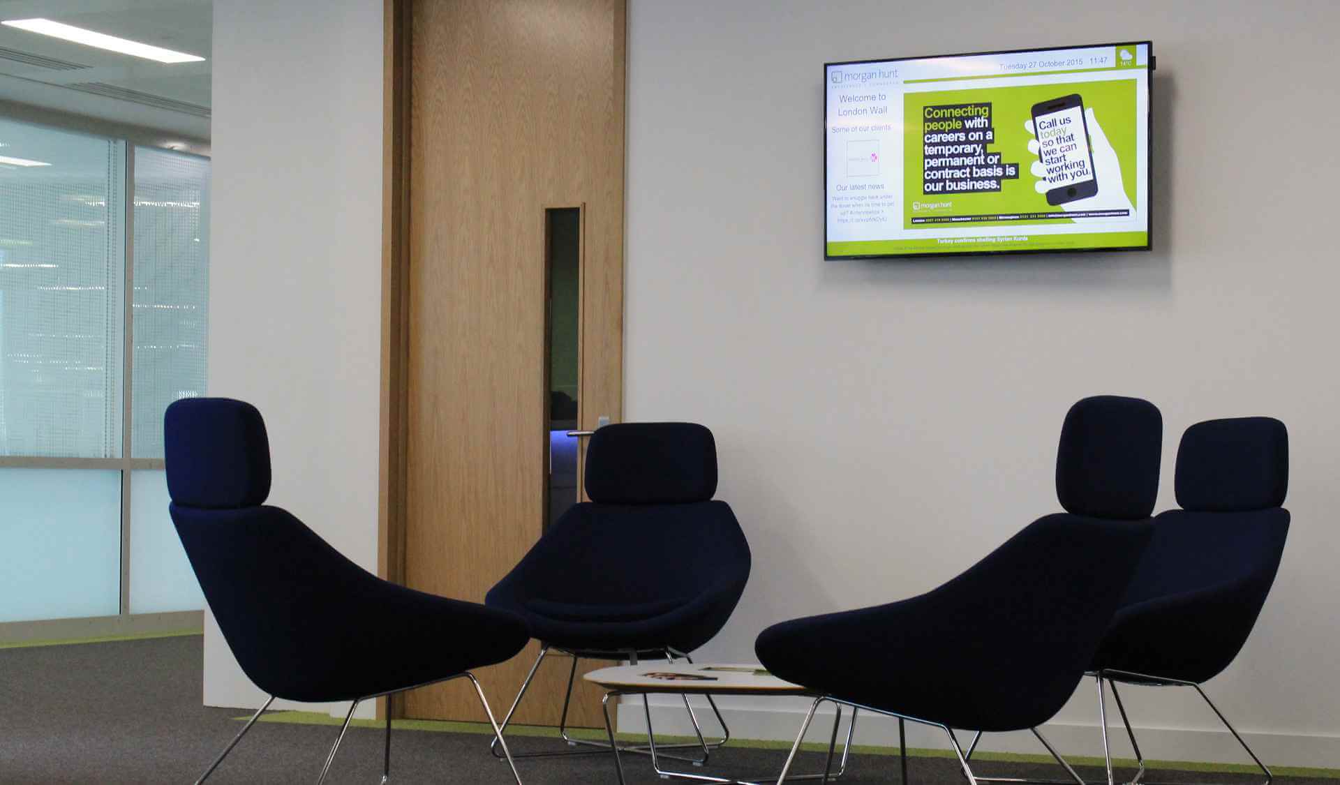 embed signage cloud based digtial signage software corporate Morgan Hunt reception chairs
