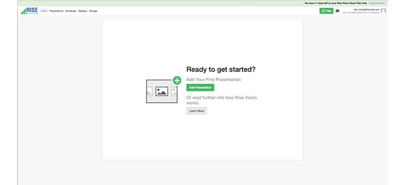 embed signage – digital signage software – Rise Vision dashboard